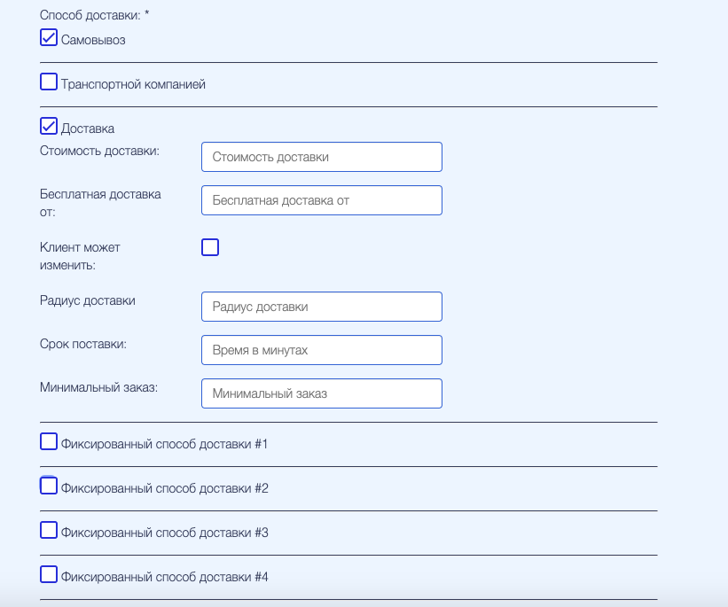 Выберите способы доставки из данного магазина. Некоторые способы доставки имеют дополнительные настройки: